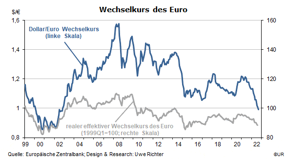 Für Anleger ist das Bild im Augenblick klarer als sonst. Die Rezession hat begonnen, in Deutschland und in den anderen 18 Ländern des Euroraums. Die Gewinne geraten daher unter Druck. Infolge der extrem hohen aktuellen Inflationsraten steigen die Inflationserwartungen und mit ihnen die Zinsen am kurzen und langen Ende der Renditekurve. Künftige Gewinne und Cashflows werden mit steigenden Zinsen auf die Gegenwart abdiskontiert. Daher wird es sowohl auf den Aktienmärkten als auch bei Anleihen zu weiteren Kursverlusten kommen. Die Wende ist noch nicht in Sicht. Was den Euro-Wechselkurs angeht, erwarte ich nicht, dass sich die Zinsdifferenz zu Dollaranlagen vergrößern wird, weil die EZB die Leitzinsen vermutlich stärker erhöhen wird als die Fed. Der Euro bleibt aber vorerst dem Risiko ausgesetzt, dass sich der Krieg in der Ukraine intensiviert, mit der Folge, dass der Dollar einmal mehr zur Fluchtwährung wird, also aufwertet.