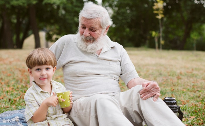Ein Großvater mit seinem Enkel.