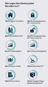Aktuell wirken viele verschiedene Effekte und Trends auf den Altersvorsorgemarkt hierzulande ein. Und das hinterlässt seine Spuren, wie die Ergebnisse der Umfrage unter unseren Lesern zeigen. Knapp 100 Vermittler und Makler machten mit und beantworteten unsere 16 Fragen rund um das Thema Altersvorsorge.