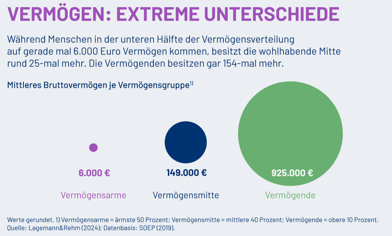 Um die Tragweite zu verdeutlichen, nennt „Finanzwende Recherche“ zunächst zwei Stichpunkte. Erstens, verfügen 26 Millionen Erwachsene in Deutschland über ein Bruttovermögen von maximal 10.000 Euro. Und da ist das Auto schon mit drin. Zweitens, besitzen 35 Millionen Menschen höchstens 29.000 Euro.