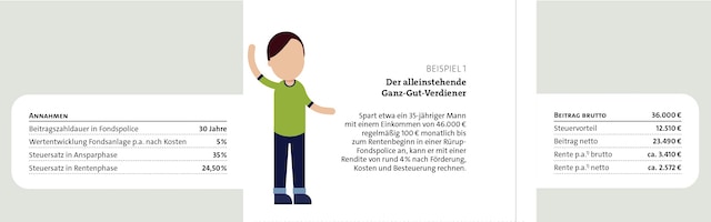 So lohnt sich die Basisrente – Beispiel 1: Der Ganz-Gut-Verdiener (Grafik vergrößern)