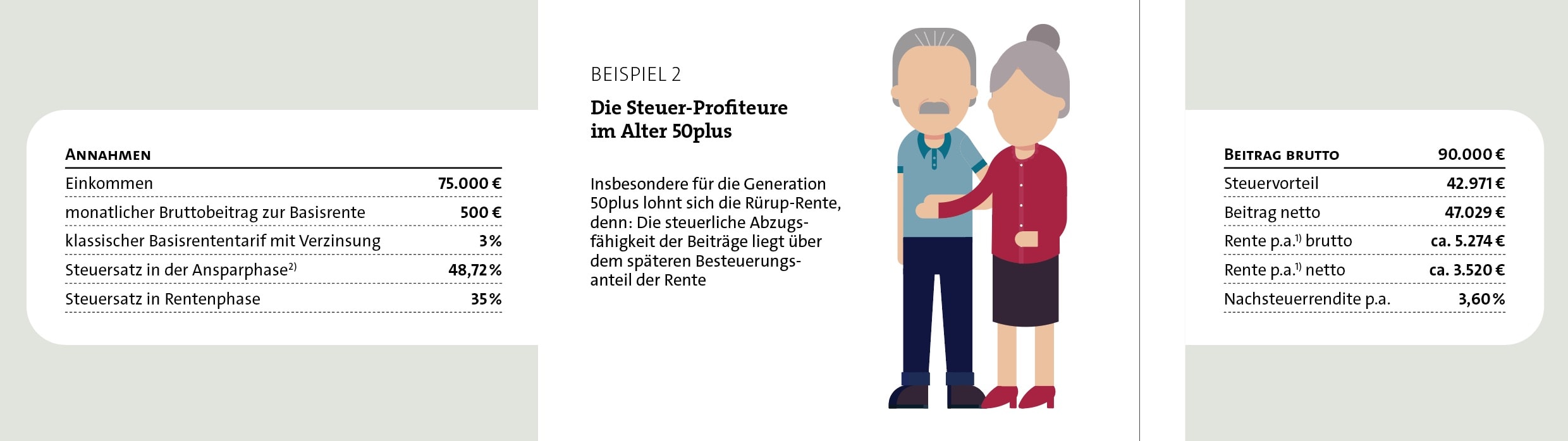 So lohnt sich die Basisrente – Beispiel 2: Die Zielgruppe 50plus (Grafik vergrößern)