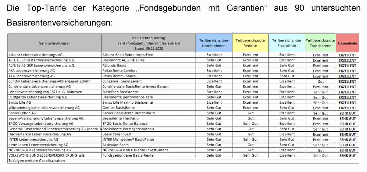 Das Institut für Vorsorge und Finanzplanung (IVFP) hat sich in einem aktuellen Rating 90 Rürup-Versicherungen vorgenommen. Die Einteilung der Tarife erfolgte dabei in die Kategorien „Klassik“, „Klassik Plus“, „Fondsgebunden mit/ohne Garantie“, „Comfort“ und „Indexpolicen“.