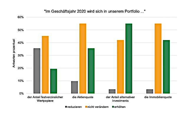 „In Anbetracht der extrem niedrigen Zinsen ist diese Anlagepolitik nachvollziehbar, zumal die Nominalzinsen seit Ausbruch der Corona-Krise noch weiter gefallen sind“, sagt Lars Heermann, Bereichsleiter Analyse und Bewertung bei der Kölner Rating-Agentur Assekurata. Knapp jeder fünfte Kapitalanleger plant aber trotz Tiefzinsen das genaue Gegenteil, nämlich den Zukauf weiterer festverzinslicher Wertpapiere.