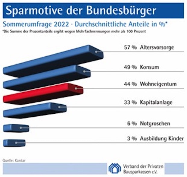 Die Zahl derjenigen, die aktuell für bestimmte Zwecke sparen können, ist auf 39,3 Prozent gesunken. Das hat die jüngste Sommerumfrage des Verbands der Privaten Bausparkassen ergeben.