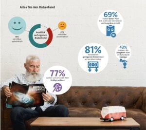 Denn – zurück zur Umfrage – selbst wenn es nicht der lang gehegte Traum sein soll, aktiv wollen die meisten bleiben. Eine beträchtliche Mehrheit von 77 Prozent der Befragten will sich verstärkt ihren Hobbys zuwenden. Und 62 Prozent wollen dabei sogar noch weiter Geld sparen.