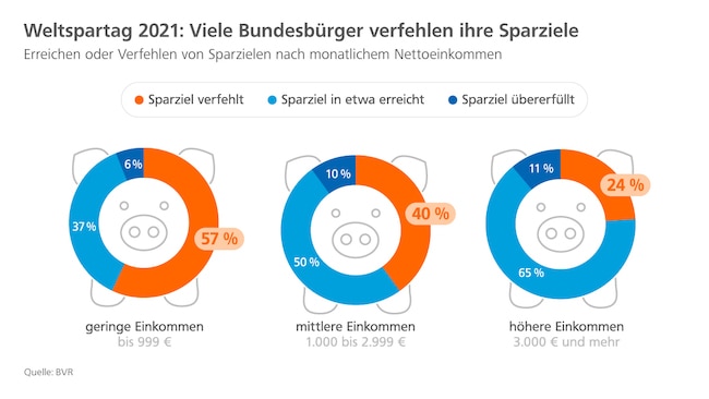 Das kling erstmal gut. Mit 57 Prozent verfehlen jedoch mehr als die Hälfte der Geringverdiener ihr individuelles Sparziel. Unter Personen mit höherem Einkommen ist dieser Anteil mit 24 Prozent deutlich geringer. „Die Politik sollte für Geringverdiener, Familien und Kleinsparer die Anreize erhöhen, sich eine zusätzliche Altersvorsorge aufzubauen“, findet BVR-Vorstandsmitglied Andreas Martin. „Die gesetzliche Rente allein reicht in der Regel nicht für die Sicherung des Lebensstandards im Alter aus.“