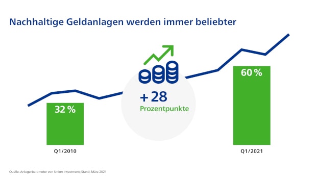 „Die nachhaltige Geldanlage ist ein Wachstumsthema, dennoch stehen wir erst am Anfang eines langfristigen Trends“, meint Anja Bauermeister, Abteilungsleiterin Publikumsfonds bei Union Investment. „Positiv ist, dass das Thema im Bewusstsein der Anlegerinnen und Anleger angekommen ist und sie es als Zukunftsthema betrachten.“