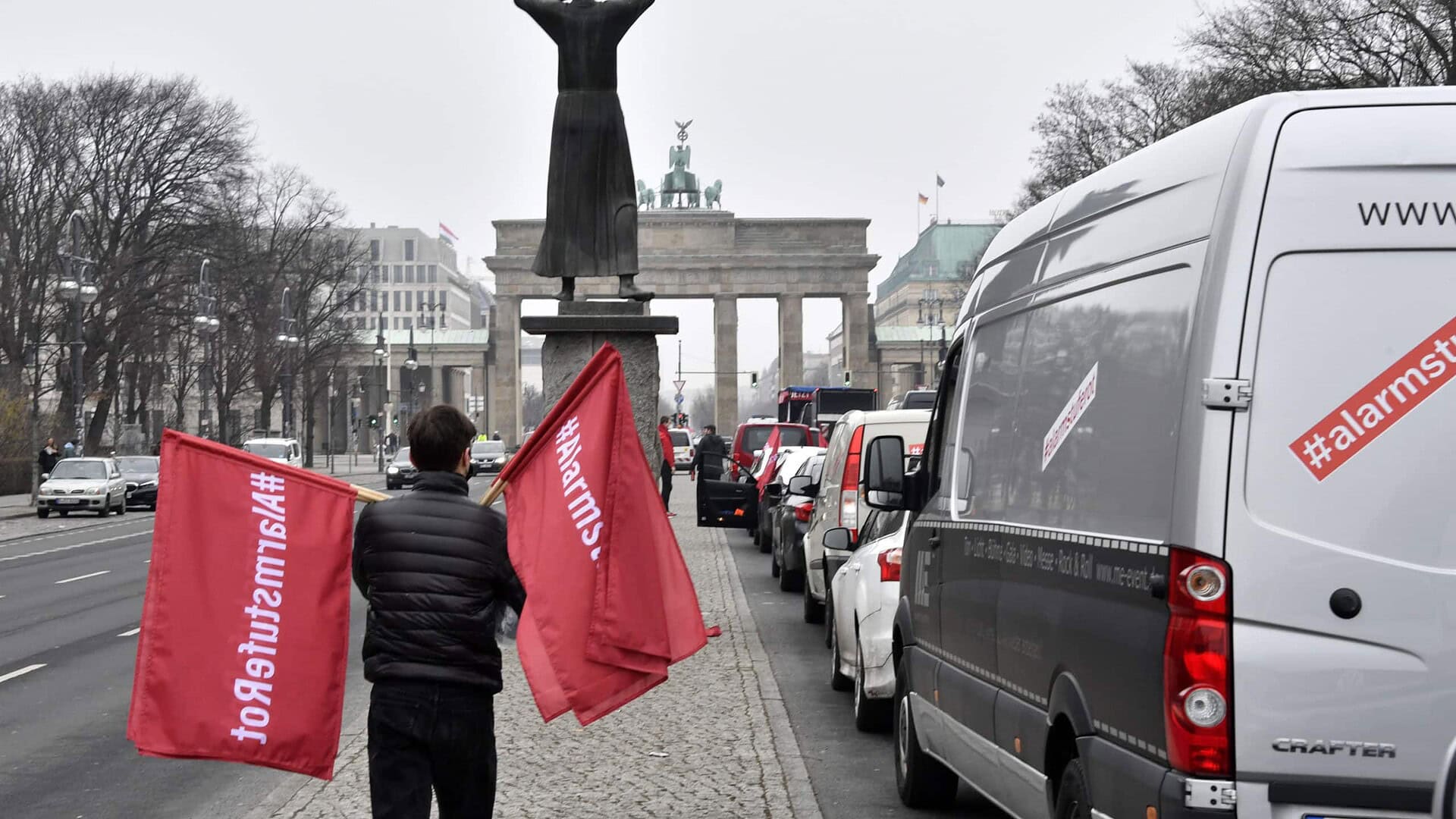 Eine Autodemo in Berlin: Hier machten Menschen aus der Veranstaltungsbranche auf ihre Notlage während des Corona-Lockdown aufmerksam.