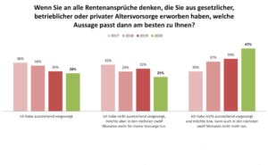 Die wirtschaftlichen Unsicherheiten, die zum Beispiel durch Kurzarbeit oder Einnahmeausfall bei Selbstständigen während der Pandemie im vergangenen Jahr entstanden sind, würden sich auch in den Plänen zur Altersvorsorge niederschlagen. Einige Trends, die schon länger zu beobachten seien, treten der Umfrage zufolge noch deutlicher zutage. So nehme der Anteil der Bürger, die ihre Vorsorge für ausreichend halten, seit einiger Zeit stetig ab. Inzwischen gehen nur noch 28 Prozent davon aus. 2017 waren es 36 Prozent.