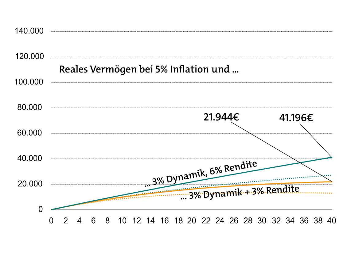 Grafik über den Einfluss von Dynamik auf Altersvorsorge bei Inflation