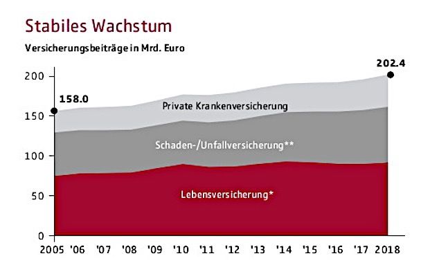 Das Beitragswachstum von rund 2 Prozent war danach vor allem auf den Prämienanstieg in der Schaden-/Unfallversicherung (plus 3,4 Prozent auf 70,7 Milliarden Euro) und in der Lebensversicherung zurückzuführen (plus 1,5 Prozent auf rund 92 Milliarden Euro).