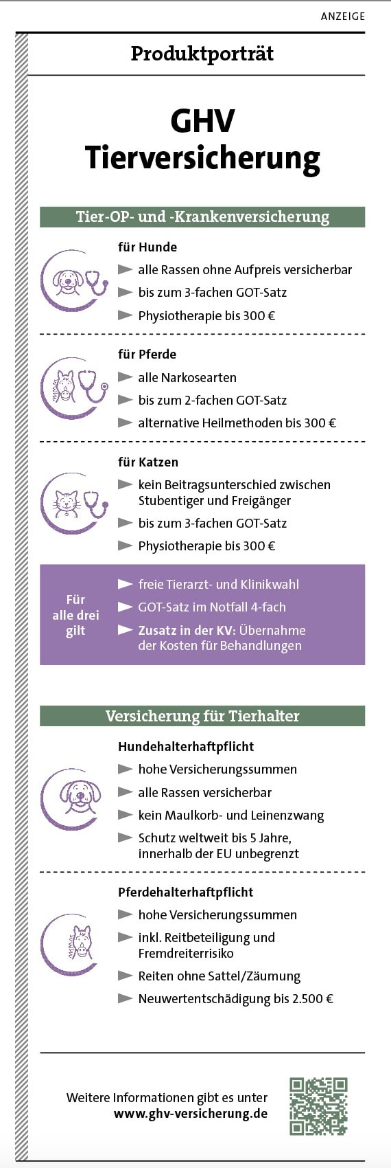 Die Versicherungsbranche reagiert auf die steigende Nachfrage nach Tierversicherungen in der Tat mit neuen, flexibleren Tarifen. Während klassische Policen oft pauschale Deckungssummen und feste Leistungen bieten, setzen moderne Tarife zunehmend auf modulare Bausteine. So können Tierhalter selbst entscheiden, ob sie eine reine OP-Versicherung oder eine umfassendere Krankenversicherung mit zusätzlichen Leistungen wie Zahnbehandlungen oder Physiotherapie abschließen möchten. Schauen Sie sich hierzu auch den Kasten zur GHV Tierversicherung unten an, hier sind etwa Kosten für Physiotherapie bei Hunden und Katzen bis zu einer Höhe von 300 Euro versichert.