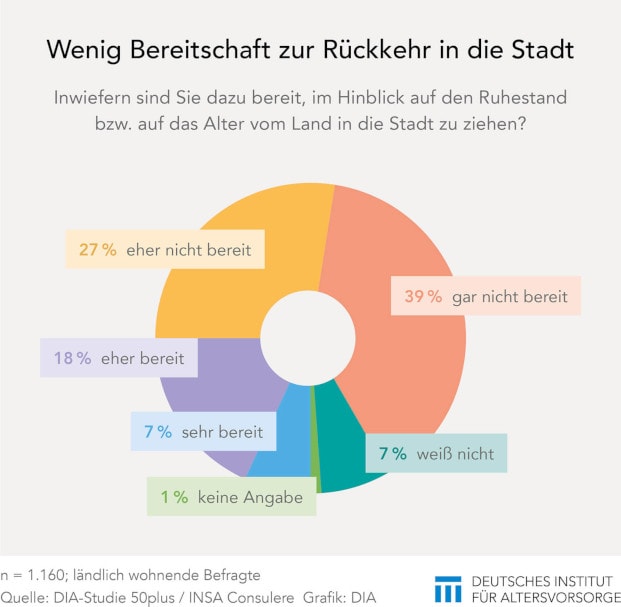 Demnach kommt nur für eine Minderheit unter den Befragten, die auf dem Land leben, aus Altersgründen ein Umzug in die Stadt in Betracht. Zwei Drittel sind dazu nicht bereit.