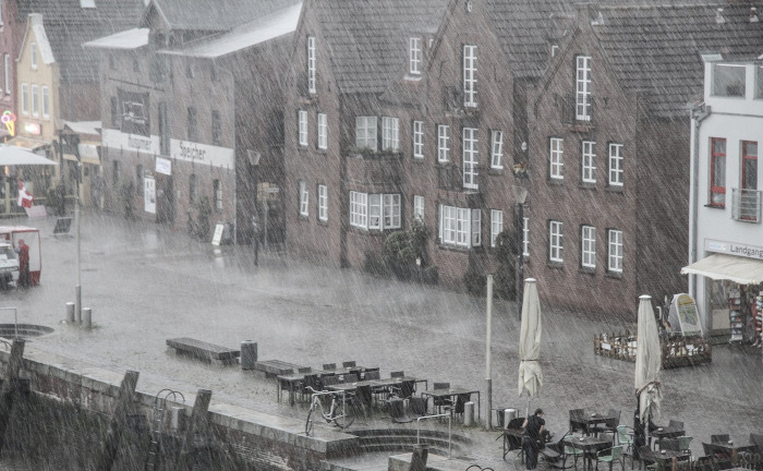 Wenn in einer Stunde 15 bis 25 Liter Regen pro Quadratmeter fallen – oder in sechs Stunden 20 bis 35 Liter – spricht der Deutsche Wetterdienst von Starkregen. Das Problem dabei: So rasch, wie sich Quellwolken nach einem heißen Tag zusammenballen und entleeren, lässt dies kaum Zeit, um sich vorzubereiten. Denn das Wasser prallt von der völlig ausgetrockneten Erde ab. Die Folge: Das Wasser staut sich auf Straßen und kann von außen in Gebäude eindringen.