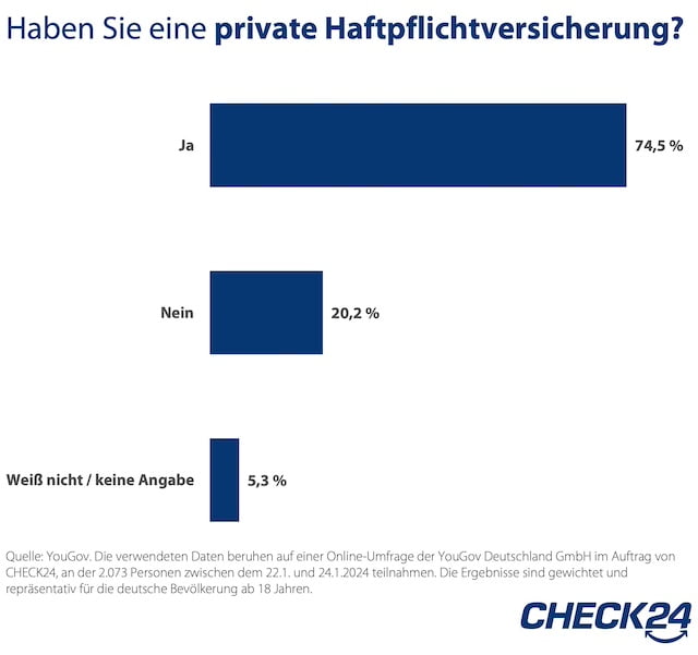 Gerade jüngere Menschen verzichten bisher auf die Privathaftpflicht, wie eine Umfrage des Vergleichsportals Check24 ergeben hat. In der Altersgruppe der 18- bis 24-Jährigen haben nur 40 Prozent der Befragten eine PHV. 34 Prozent der jungen Leute haben keine Privathaftpflicht – mehr als ein Viertel weiß es nicht. Studierende und Azubis sind aber oft bis zum 25. Lebensjahr in der Privathaftpflicht der Eltern mitversichert.