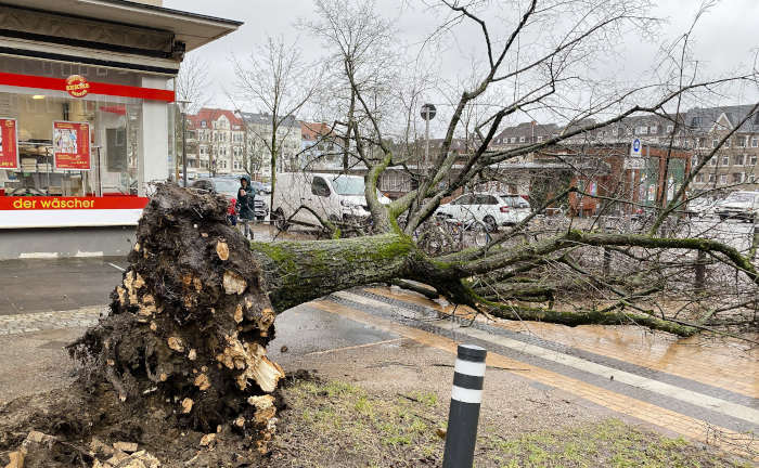 Sturmopfer: Ein umgestürzter Baum im Kieler Stadtteil Blücherplatz.