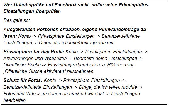 „Liebe Einbrecher, wir sind 14 Tage auf Mallorca. Viel Spaß mit unserem Laptop. Den Schmuck finden Sie im Schlafzimmerschrank unten rechts.“ So ähnlich postet die Polizei Hagen auf Facebook. Die Polizisten weisen damit charmant auf Gefahren hin, die in sozialen Netzwerken lauern. Tweets wie „endlich am Strand“ oder Strandfoto-Postings, die jeder sehen kann, sind nämlich regelrechte Türöffner für Diebe.